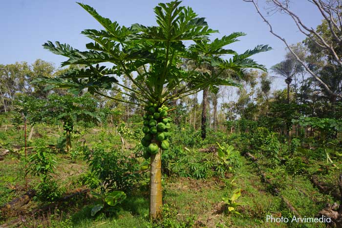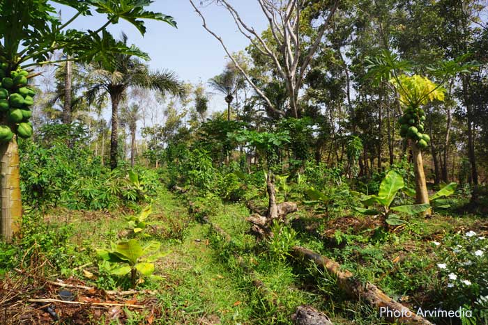 Agriculture bio Sénégal, modèle de permaculture mélange d'arbres fruitiers et plantes médicinales et aromatiques.
