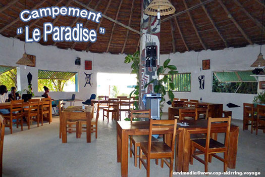 Le campement Paradise propose un service de restauration à ses clients ainsi qu'aux visiteurs. Spécialités sénégalaises et plats européens
