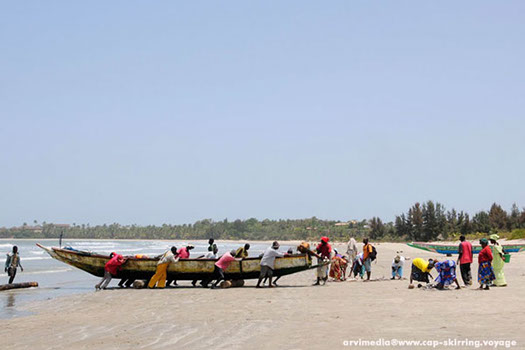 Retour de pêche sur la plage de Cap Skirring village de pêcheurs Casamance Sénégal poissons frais garanti à tous les repas