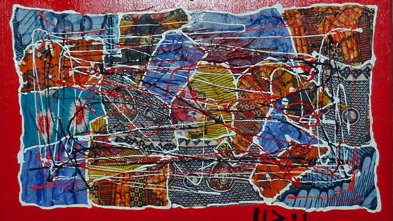 Peinture acrylique avec collage de tissus