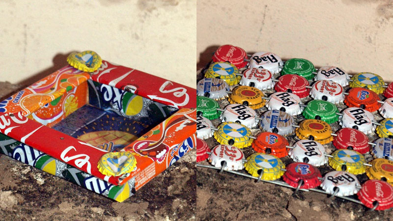 Cendrier art récup fabriquer avec des emballages de canettes, Dessous de plat capsules de bouteille