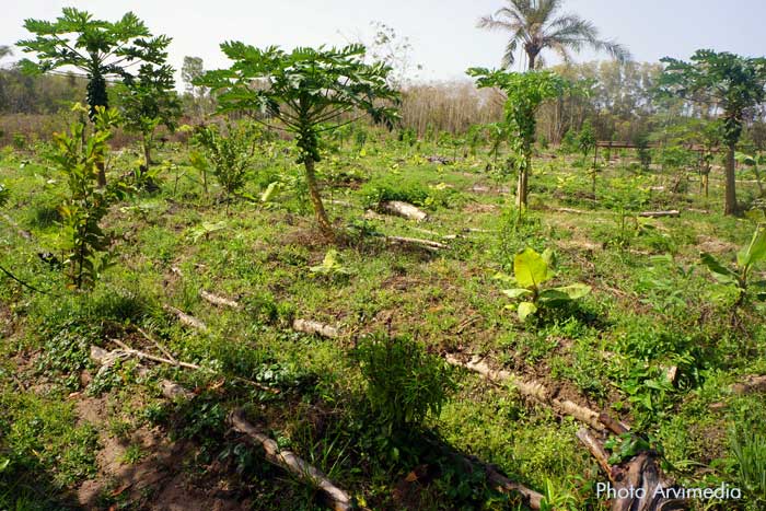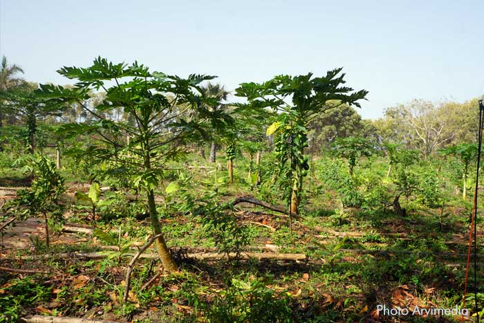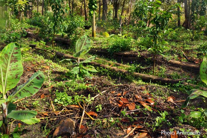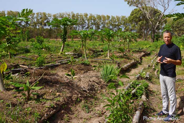 Agriculture bio Sénégal, modèle de permaculture mélange d'arbres fruitiers et plantes médicinales et aromatiques.