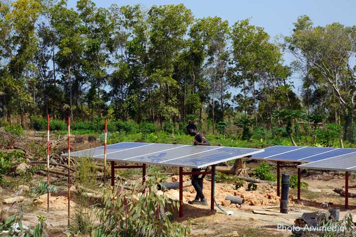 L'arrosage est effectué à l'aide de pompes solaires qui puisent l'eau dans la nappe phréatique.