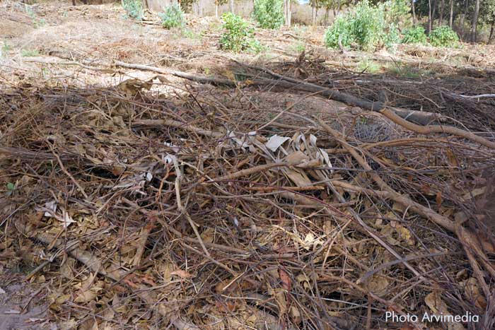 Utilisation de branchage de paille de feuillage pour composer les buttes...