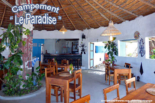 Le campement Paradise propose un service de restauration à ses clients ainsi qu'aux visiteurs. Spécialités sénégalaises et plats européens