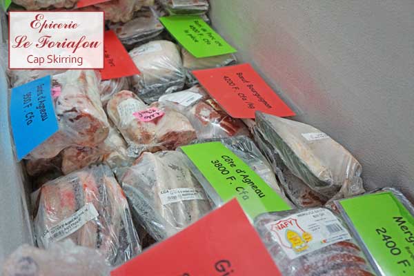 En surgelés, le Foriafou dispose aussi d'un grand choix de viande ( boeuf, poulet, porc et agneau, et grand choix de fruits et de légumes )
