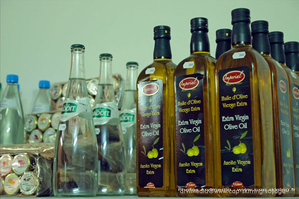 Huile d'olive au meilleur prix, grand choix d'eaux minérales, boissons gazeuses, sodas, jus de fruits et confitures de Casamance...