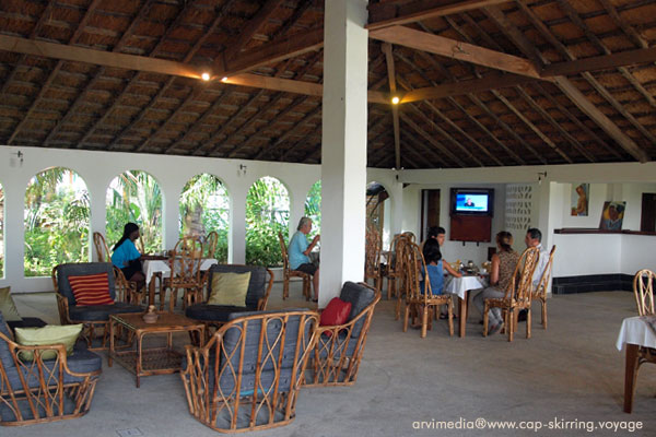 Le jardin exotique donne accès à une grande salle très aérée où il fait bon se retrouver le matin pour le petit déjeuner.