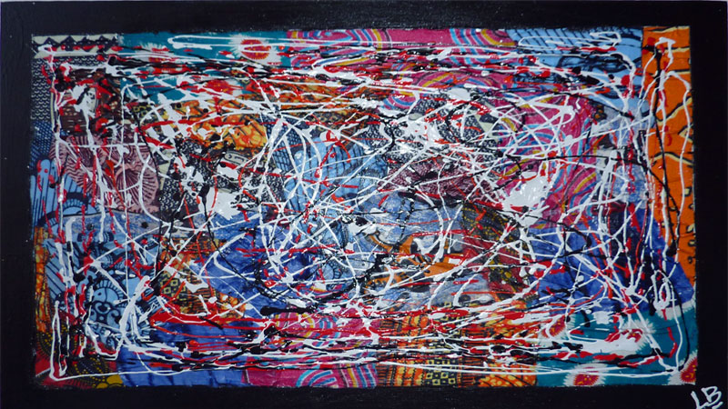 Peinture acrylique avec collage de tissus