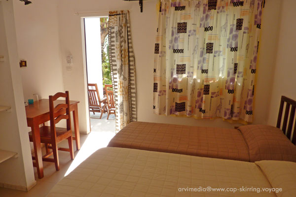 Les chambres d'hôtes sont en bordure de mer avec un accés direct sur la magnifique plage du Cap Skirring. 5 grandes chambres sont à votre disposition, toutes équipées de ventilation et de salles de bain avec eau chaude.