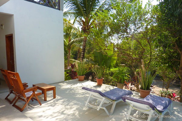 Des petits patios aménagés pour des moments de convivialités entre amis, et pour aprécier la douceur de la Casamance.